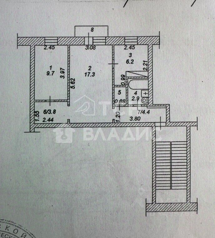Расположена по адресу: город Ивантеевка, Советский проспект, дом 16, на 2 этаже, 5-этажного дома. Общая площадь квартиры 45,4 метров, две комнаты 17,3 и 9,7 метров, кухня 6,2 метров. Квартира в отличном состоянии, есть все необходимое для комфортного проживания. Так же имеется гардеробная и постирочная комнаты и балкон.