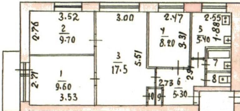 Три изолированные комнаты и одна проходная (Комната 1 - 9,6, комната 2 - 9,7, комната 3 проходная - 17,5, комната 4 - 8,2). Санузел раздельный. Комфортный второй этаж, лифта нет. Теплый кирпичный дом, не бывает холодно, не смотря на то что квартира угловая. Как раз благодаря этому, есть большой балкон. Он больше, чем у остальных квартир в доме.