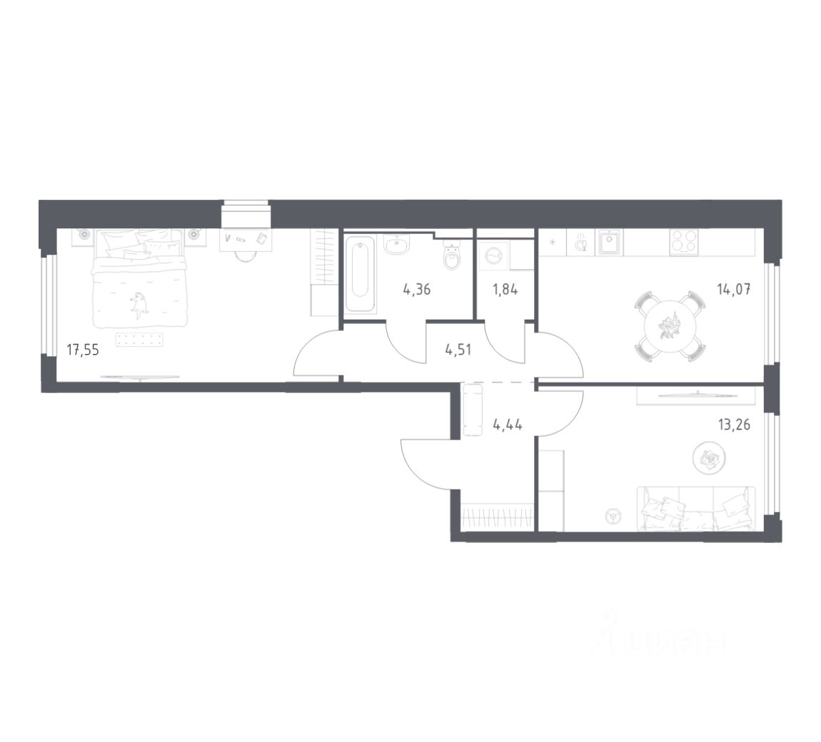 Квартиры комплекса — на выбор: могут быть как с отделкой, так и без. В случае с готовой отделкой в комнатах и прихожей уже будут обои, натяжные потолки и ламинат, а в санузлах — керамогранит на полу и керамическая плитка на стенах. Мы подведем все коммуникации и установим сантехнику. Светлые тона визуально делают комнаты еще просторнее. Вы легко воплотите любые идеи по обустройству и создадите интерьер в современном или классическом стиле. Можно сразу заказать кухню, комплекты мебели, светильники, декор и даже посуду в нашем маркетплейсе — мы полностью подготовим квартиру к новоселью.