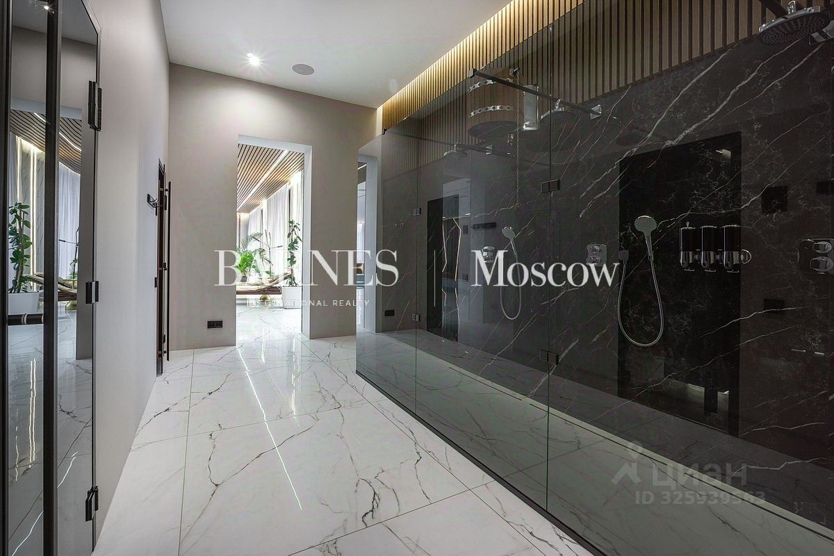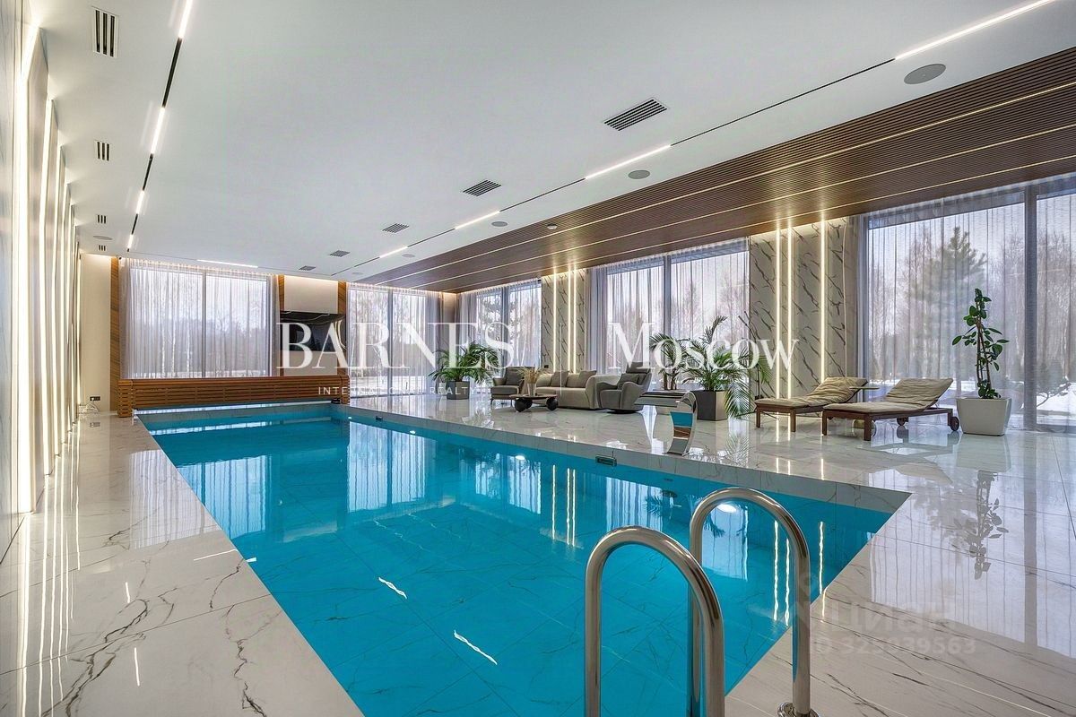 Планировка: 1 этаж: холл, большая гардеробная, постирочная, кухня, столовая с выходом на открытую веранду с дровяным камином-барбекю, гостиная с паровым камином, кабинет, гостевой санузел, котельная, гостевая спальня, спа-зона 200 кв.м.: 3 душевых с обливным ведром, санузел, хамам с звездным небом, сауна с стеклом в бассейн, плавательный бассейн 10 на 5 м , зона отдыха с шезлонгами тв и мягкой группой мебели с выходом на террасу, 2 этаж: просторный холл со вторым светом в зоне лестницы, хозяйский блок 100 кв.м. с большой спальней с выходом на террасу, ванная комната с панорамным видом на участок, гардеробная на 14 шкафов и выходом на балкон, 2 детских спальных блока с выходом на террасу, гардеробными и санузел, гостевая спальня.