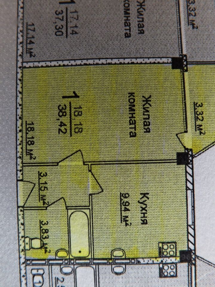 Общая площадь38,42 м2